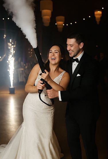 Perfect for: Grand entrances Hype moments on the dance floor DJ drops and beat transitions Surprise reveals Features: Safe for indoor and outdoor use Cold fog burst (no heat, no residue) Dissipates instantly — no lingering haze Looks incredible in photos and video Adds energy and excitement to any moment We time each blast with the music to create a show-stopping effect your guests feel as much as they see. Blast the energy. Elevate the hype.